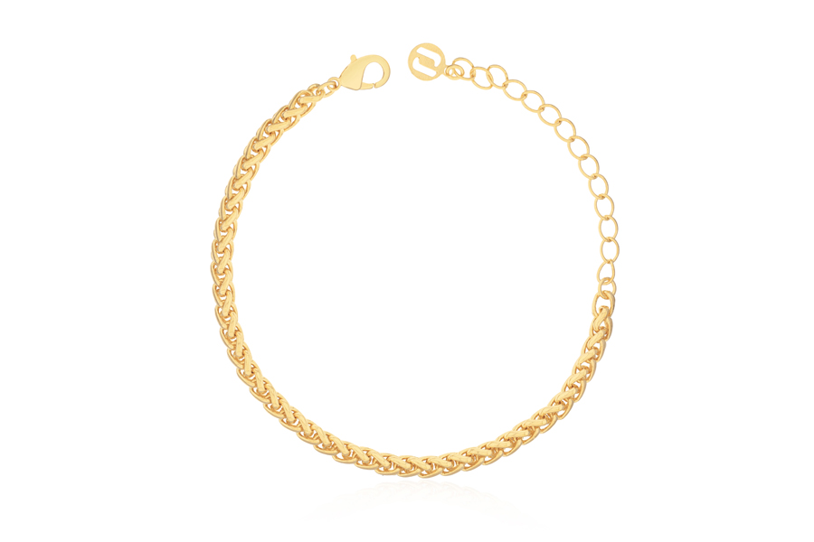 PULSEIRA BANHADA EM OURO, CORRENTE ELO PORTUGUÊS 2,50mm, 17cm COMPRIMENTO, EXTENSOR 5cm COMPRIMENTO E PESO 2,20g