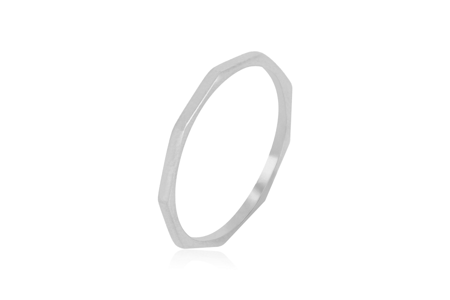 ANEL EM PRATA, HEXÁGONO CRAVEJADO