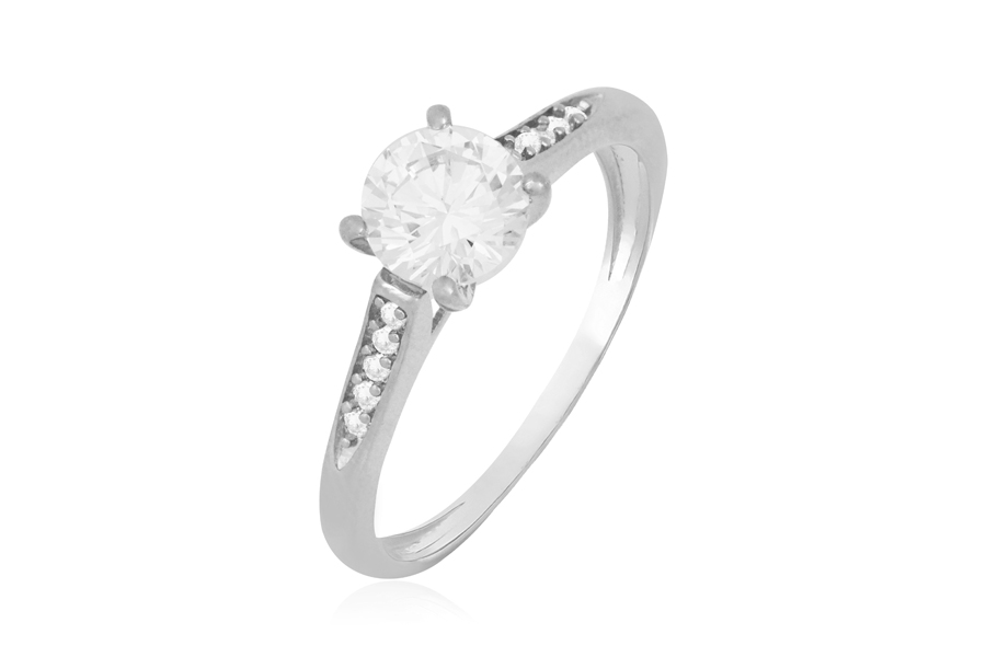 ANEL EM PRATA, SOLITÁRIO 4mm, COM BANHO DE RÓDIO BRANCO