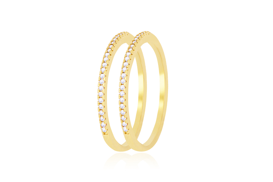 ANEL BANHADO EM OURO, APARADOR UNITÁRIO 3,80mm LARGURA, COM 2 FILEIRAS DE ZIRCÔNIAS