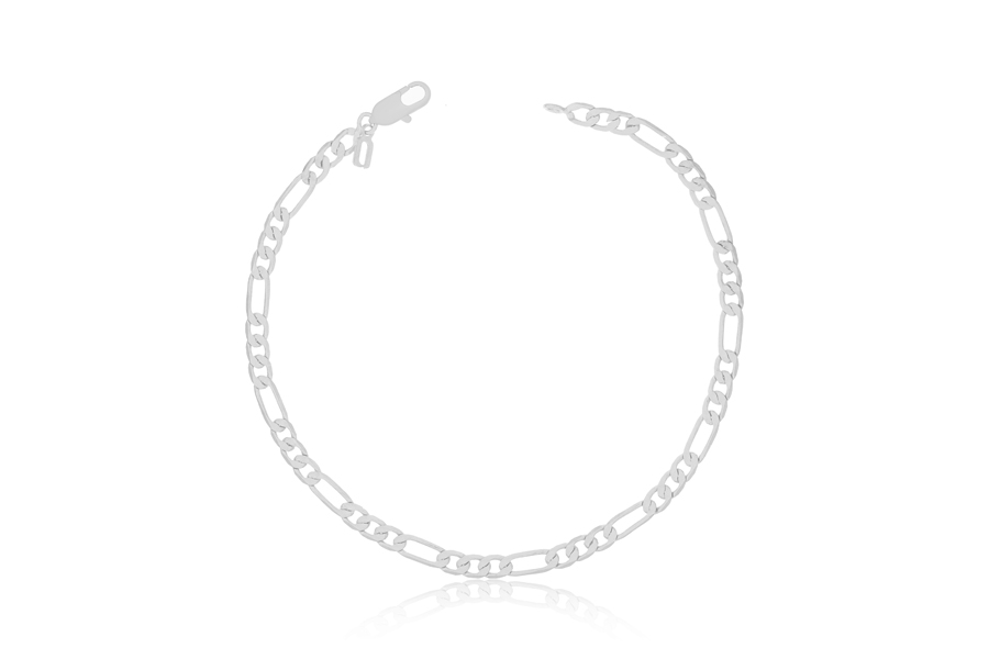 PULSEIRA BANHADA EM RÓDIO BRANCO, CORRENTE ELO 4mm DIÂMETRO, 19cm COMPRIMENTO, EXTENSOR 5cm COMPRIMENTO E PESO 5,20g