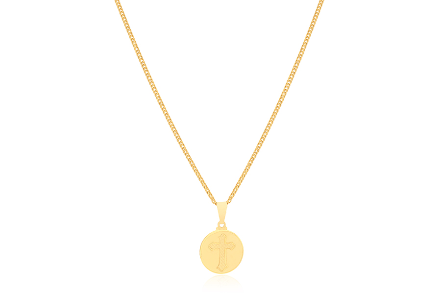 GARGANTILHA BANHADA EM OURO, ELO 1,20mm LARGURA, 40cm COMPRIMENTO E OLHO GREGO 15,50mm LARGURA