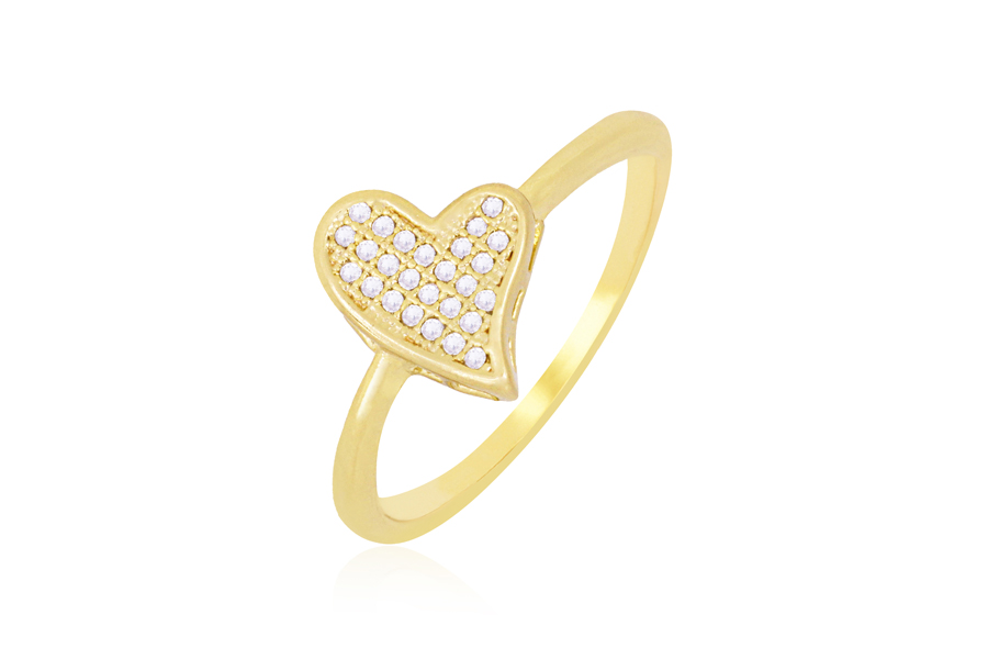 ANEL BANHADO EM OURO CORAÇÃO 7mm ALTURA E ZIRCÔNIAS BRANCAS OU COLORIDAS