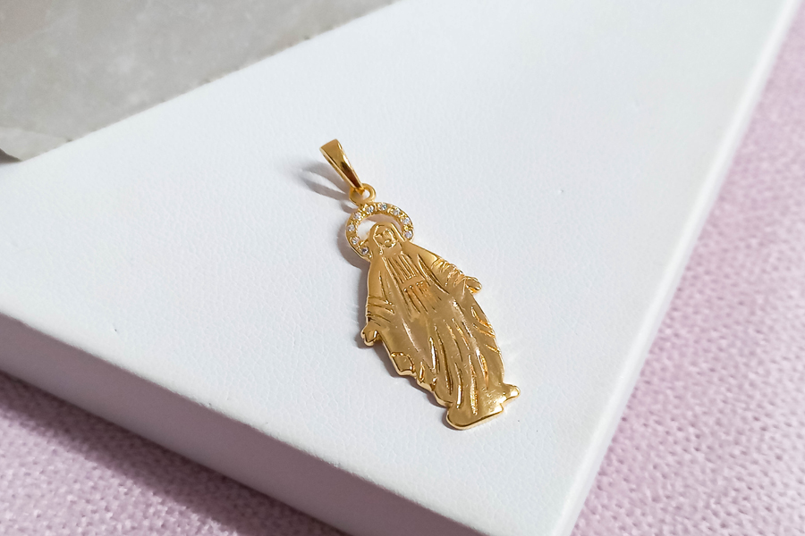 PINGENTE BANHADO EM OURO, CRISTAL REDONDO 35mm, SÃO MIGUEL