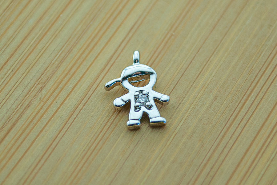 PINGENTE RÓDIO BRANCO, MENINO 15mm ALTURA COM 16 ZIRCÔNIAS