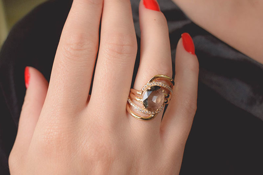 ANEL BANHADO EM OURO, TREVO, COLEÇÃO ÍCONES