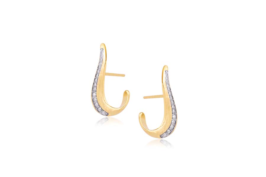 BRINCO BANHADO EM OURO, ASA CRAVEJADA DE BAGUETES E ZIRCÔNIAS REDONDAS NAS PONTAS, 21mm LARGURA