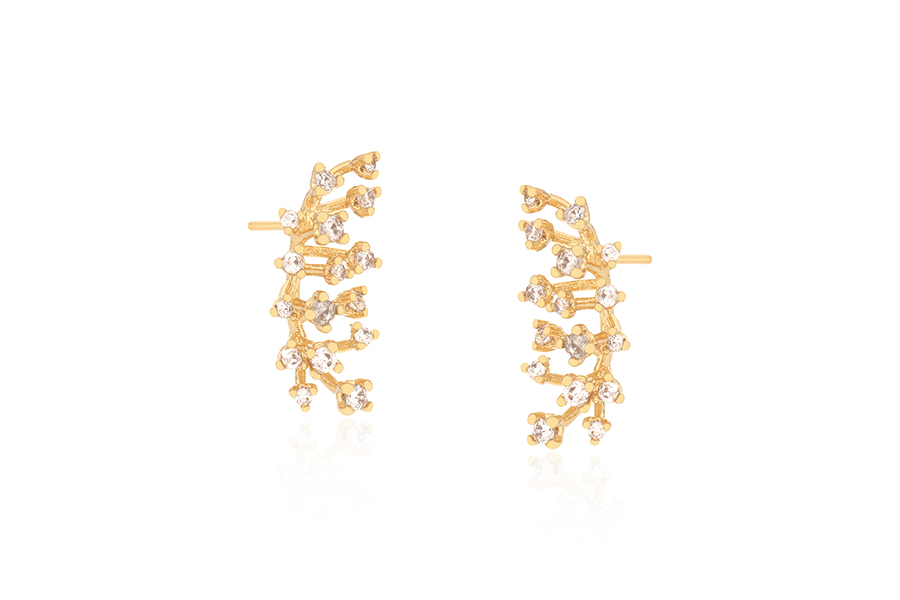 BRINCO BANHADO EM OURO, 5mm DIÂMETRO COM 4 ZIRCÔNIAS, COLEÇÃO ÍCONES