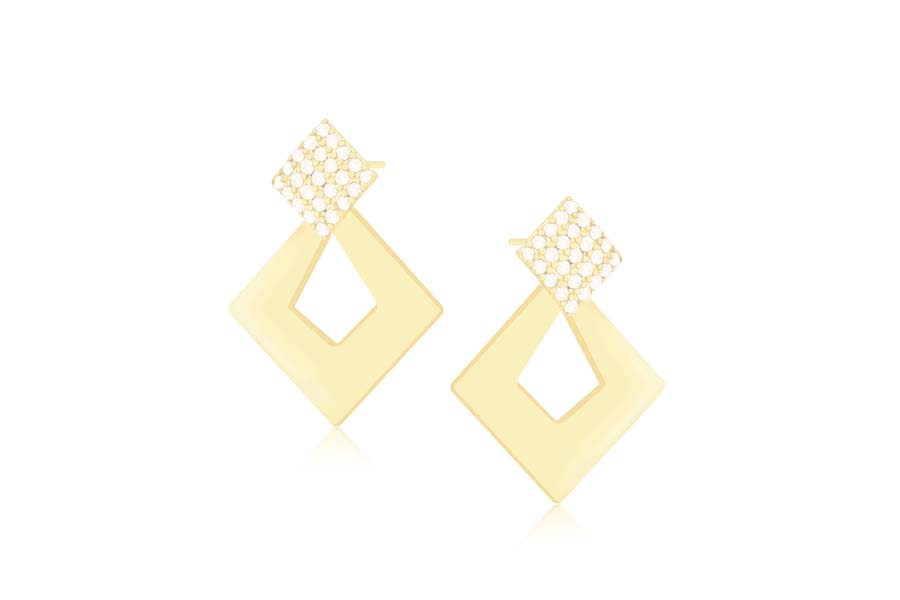 BRINCO BANHADO EM OURO, CRISTAL QUADRADO 16mm