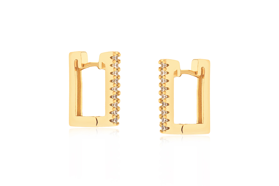 BRINCO BANHADO EM OURO, CRISTAL QUADRADO 21mm, COLEÇÃO INTENSE COLORS