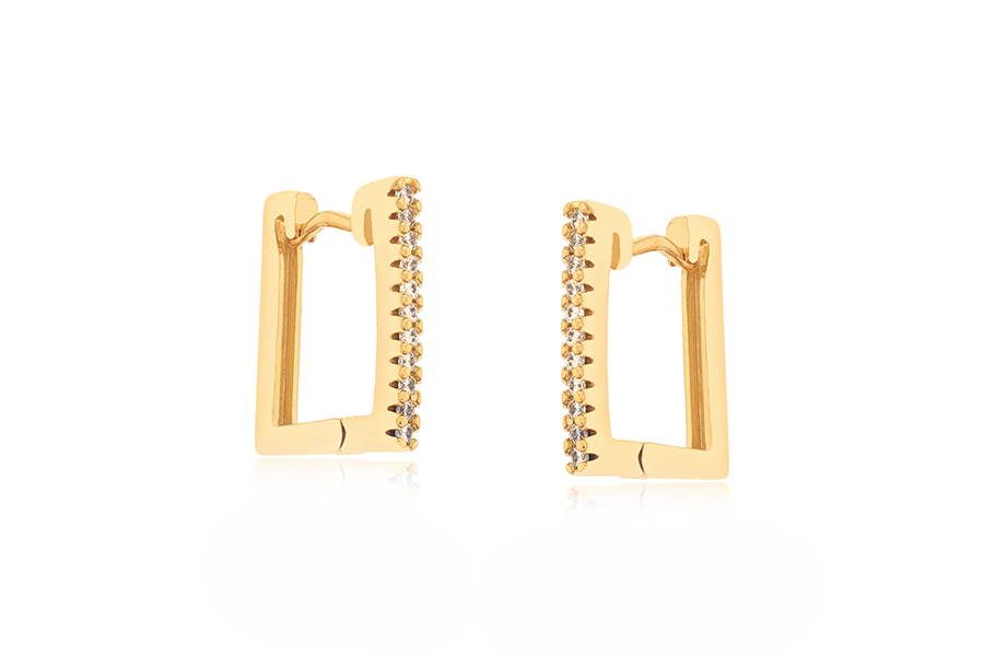 BRINCO BANHADO EM OURO, CRISTAL QUADRADO 16mm