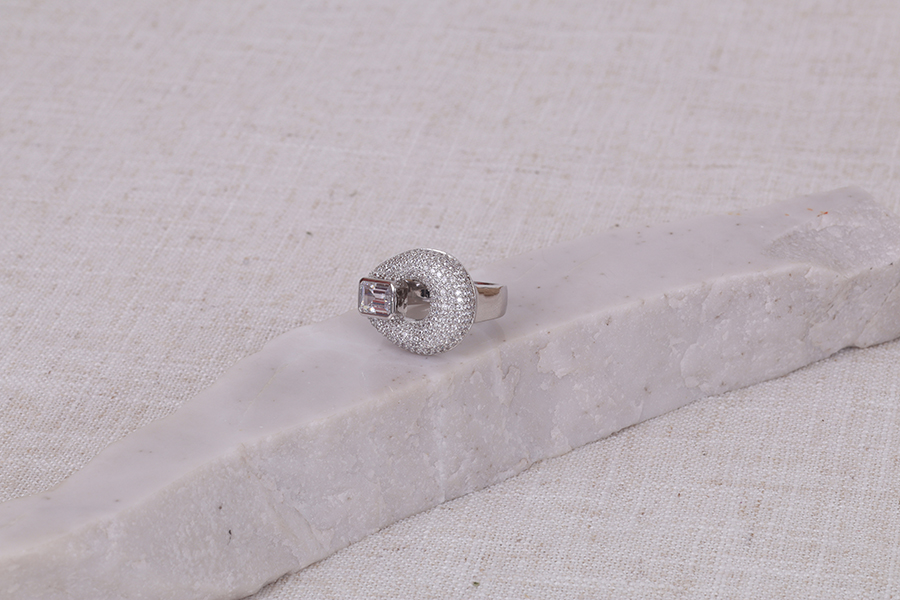 ANEL BANHADO EM RÓDIO BRANCO, COM 88 ZIRCÔNIAS