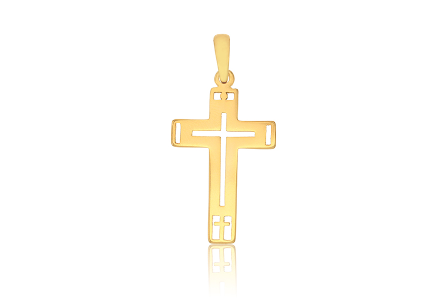 PINGENTE BANHADO EM OURO, 15mm DE DIÂMETRO, CRUZ