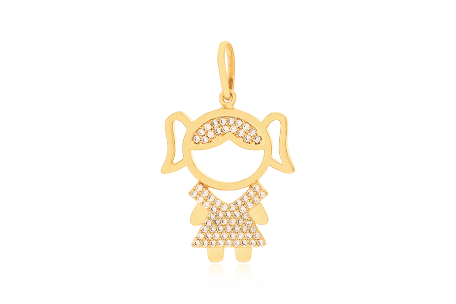 PINGENTE BANHADO EM OURO MENINA COM 5 ZIRCÔNIAS E 15,50mm ALTURA