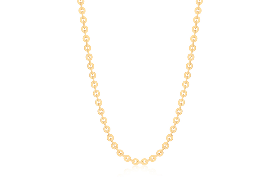 CORRENTE BANHADA EM OURO, ELO CORDA 2,50mm, 45cm COMPRIMENTO, EXTENSOR 5cm COMPRIMENTO E PESO 8,70g