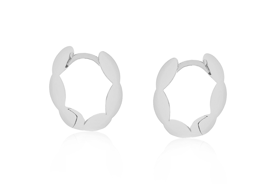 BRINCO BANHADO EM RÓDIO BRANCO, 50mm ALTURA E 34mm LARGURA, LISO OU ACETINADO