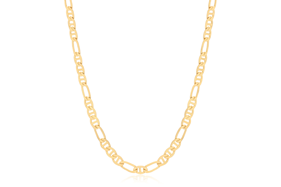 CORRENTE BANHADA EM OURO, ELO PORTUGUÊS 5mm, 45cm COMPRIMENTO, EXTENSOR 5cm COMPRIMENTO E PESO 12,7g