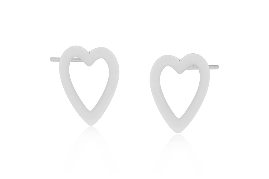 BRINCO BANHADO EM PRATA LEVE, CORAÇÃO 6mm LARGURA