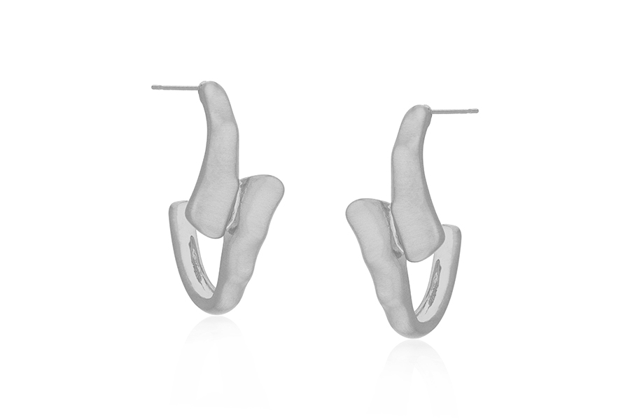 BRINCO BANHADO EM RÓDIO BRANCO, 50mm ALTURA E 34mm LARGURA, LISO OU ACETINADO