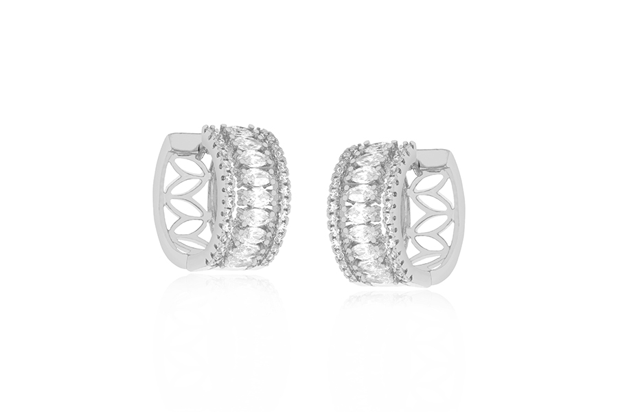 BRINCO BANHADO EM RÓDIO BRANCO, NAVETE 7,50mm COMPRIMENTO