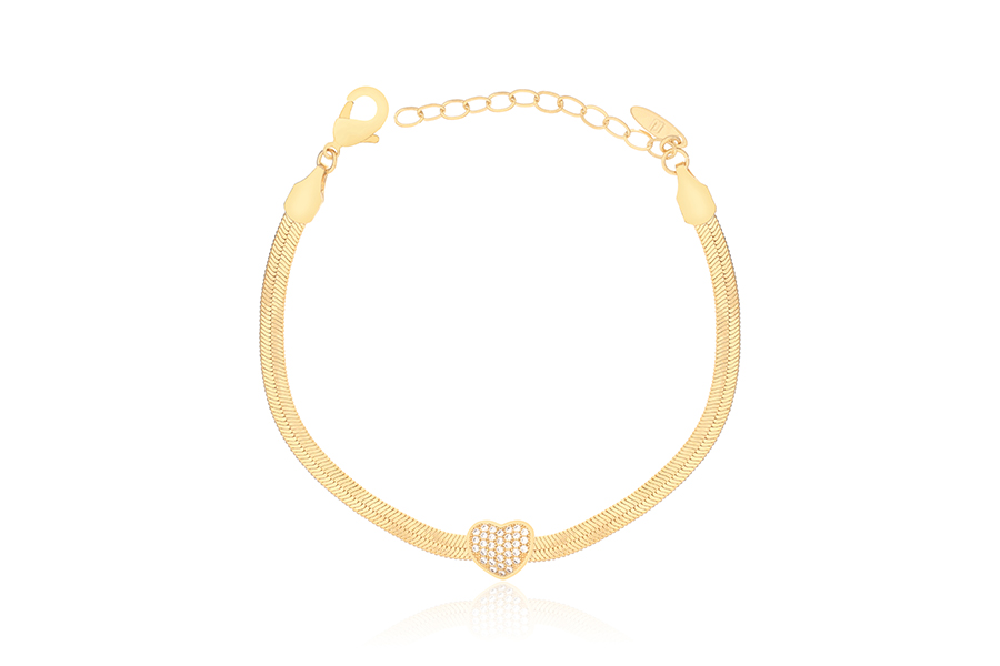 PULSEIRA BANHADA EM OURO, ELO PORTUGUÊS 5mm, 18cm COMPRIMENTO E CORAÇÃO 12mm LARGURA COM ZIRCÔNIAS COLORIDAS