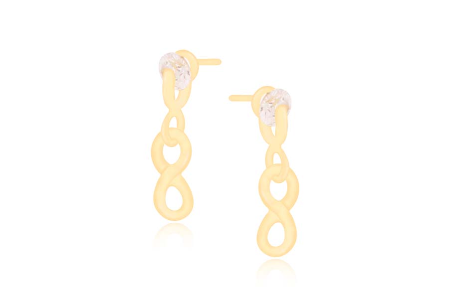BRINCO BANHADO EM OURO, 5mm DIÂMETRO COM 4 ZIRCÔNIAS, COLEÇÃO ÍCONES