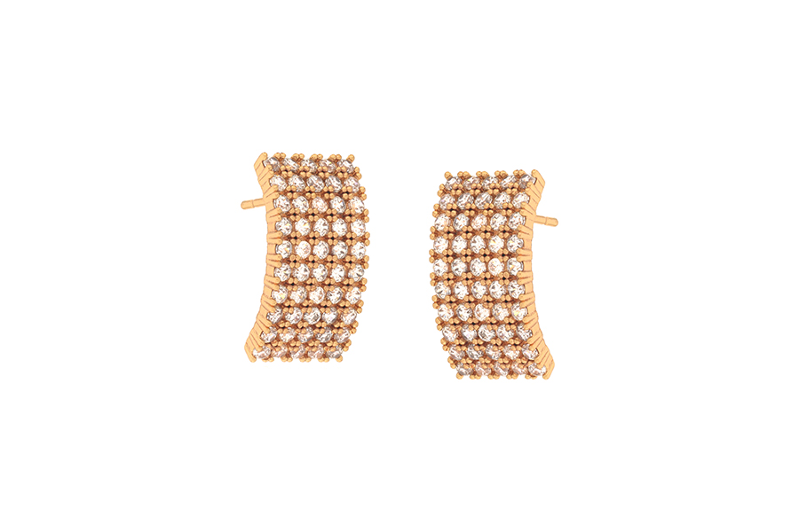 BRINCO EM PRATA, MEIA ARGOLA CRAVEJADA, 9,60mm ALTURA