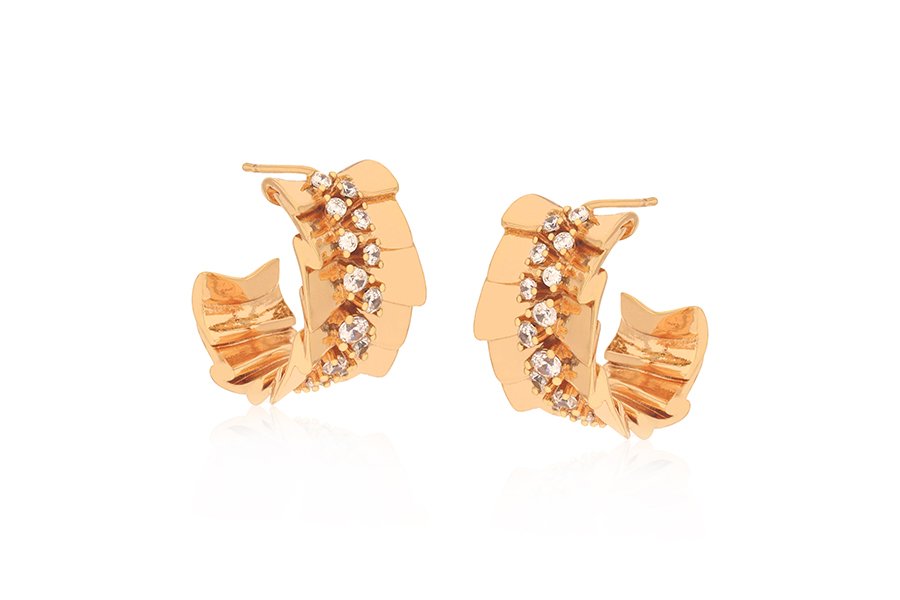 BRINCO BANHADO EM OURO, 5mm DIÂMETRO COM 4 ZIRCÔNIAS, COLEÇÃO ÍCONES