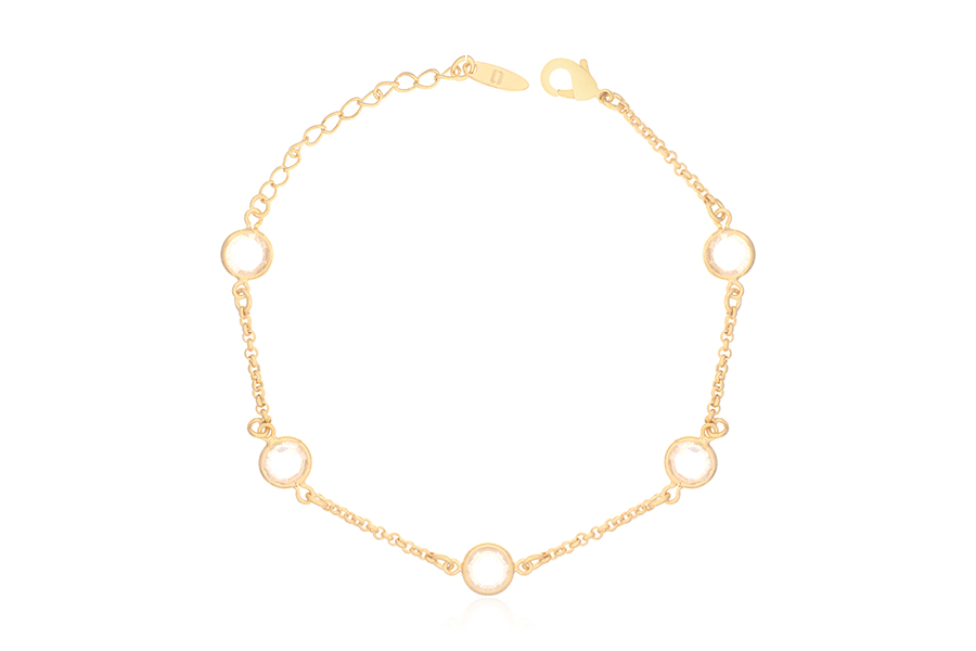 PULSEIRA BANHADA EM RÓDIO BRANCO, ELO PORTUGUÊS 2,50mm, 16cm COMPRIMENTO, EXTENSOR 5cm COMPRIMENTO, PONTO DE LUZ, GRATIDÃO E AMOR 12mm DIÂMETRO