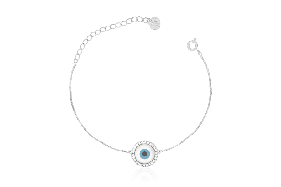 PULSEIRA BANHADA EM RÓDIO BRANCO, ELO PORTUGUÊS 2,50mm, 16cm COMPRIMENTO, EXTENSOR 5cm COMPRIMENTO, PONTO DE LUZ, GRATIDÃO E AMOR 12mm DIÂMETRO