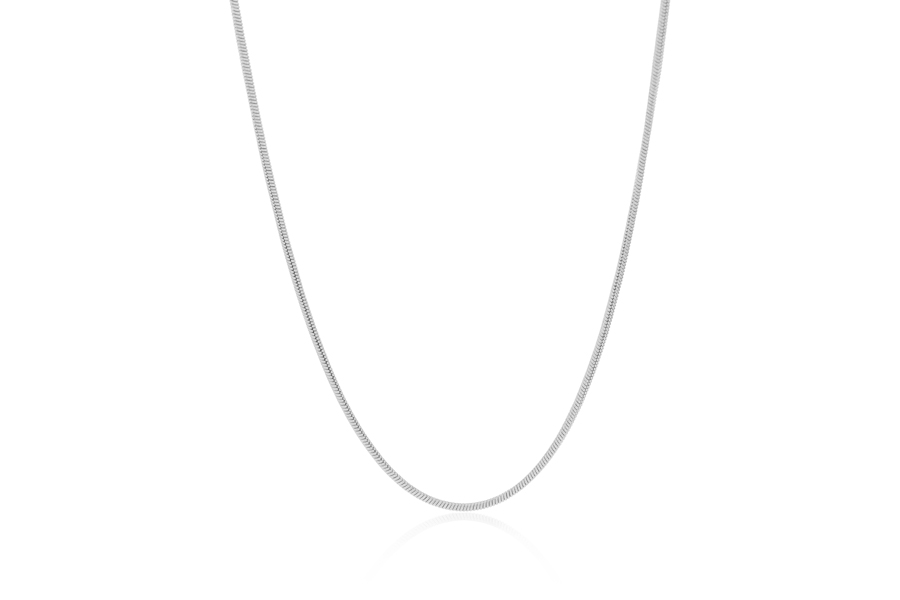 CHOKER BANHADA EM RÓDIO BRANCO, CORRENTE ELO VENEZIANA 0,80mm, 35cm COMPRIMENTO, EXTENSOR 10cm COMPRIMENTO E PESO 1,80g