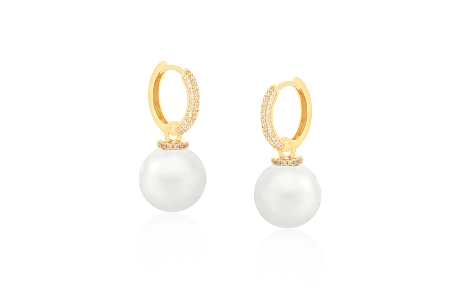 BRINCO BANHADO EM OURO, PÉROLA SHELL PÃO 6mm
