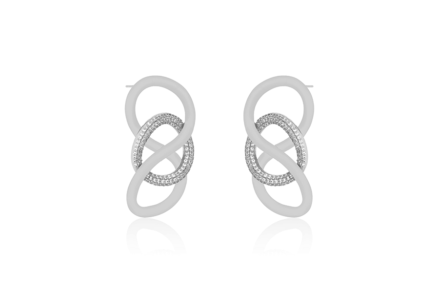 BRINCO BANHADO EM RÓDIO BRANCO, 50mm ALTURA E 34mm LARGURA, LISO OU ACETINADO