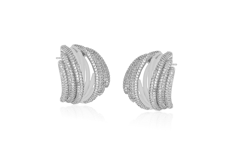 BRINCO BANHADO EM RÓDIO BRANCO, OVAL 25x22mm