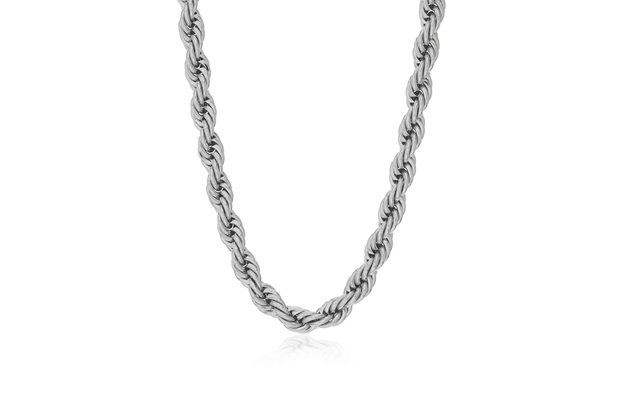 GARGANTILHA BANHADA EM RÓDIO BRANCO, ELO ESFERA ACHATADA 2mm DIÂMETRO, 80cm COMPRIMENTO E PESO 6,90g