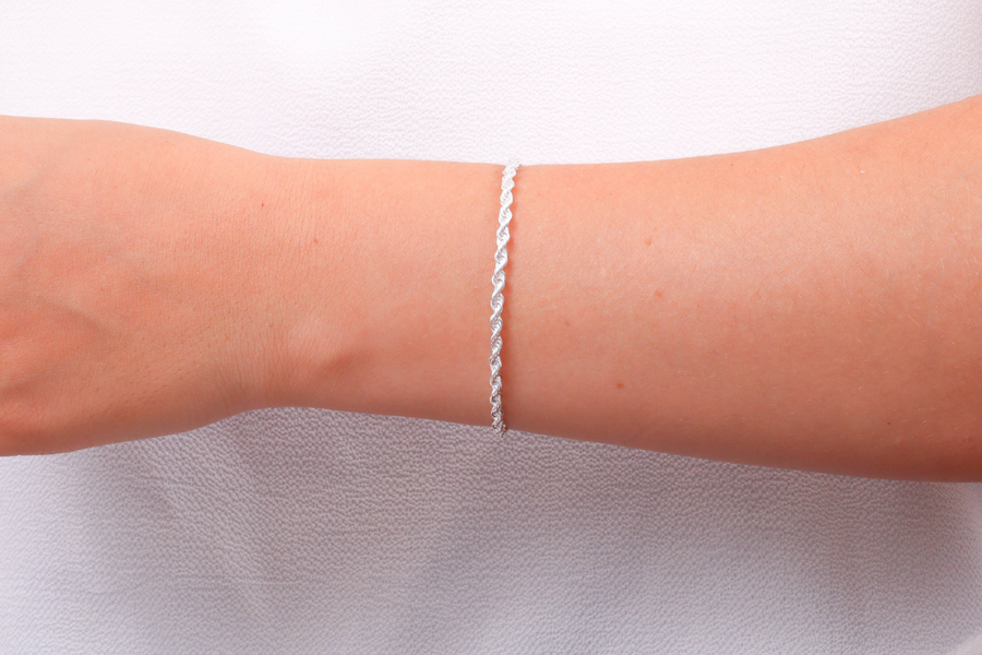 PULSEIRA BANHADA EM RÓDIO BRANCO, CORRENTE CORDA 3mm, 17cm COMPRIMENTO, EXTENSOR 5cm COMPRIMENTO E PESO 5,30g