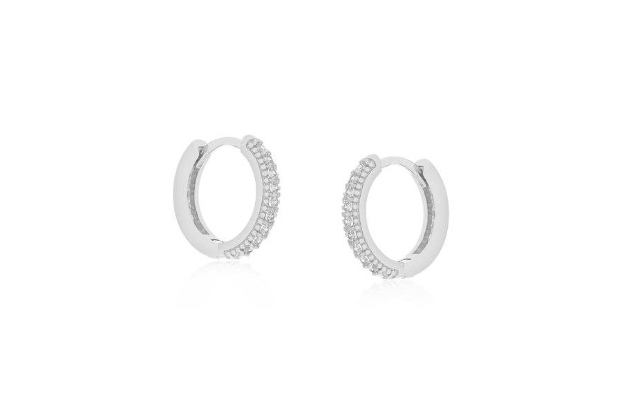 BRINCO BANHADO EM RÓDIO BRANCO, 7mm DIÂMETRO COM 14 ZIRCÔNIAS