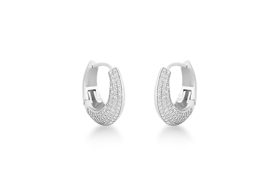 BRINCO BANHADO EM RÓDIO BRANCO, ARGOLA 18mm DIÂMETRO E 18mm LARGURA COM ZIRCÔNIAS NAS LATERAIS