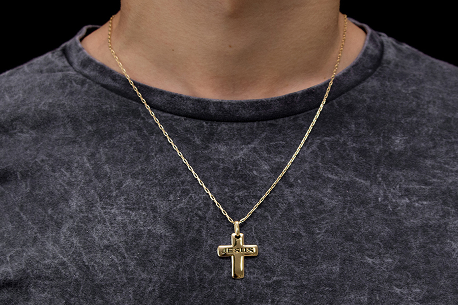 PINGENTE BANHADO EM OURO, 15mm DE DIÂMETRO, CRUZ