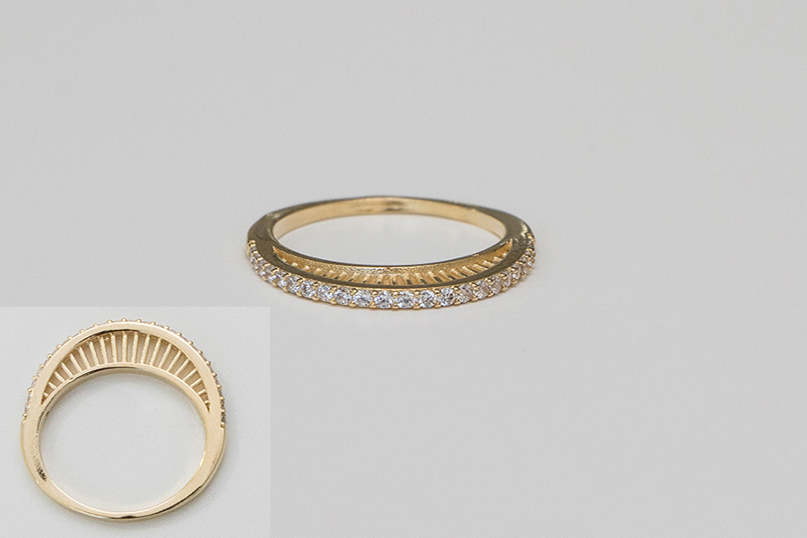ANEL BANHADO EM OURO, COM ZIRCÔNIAS