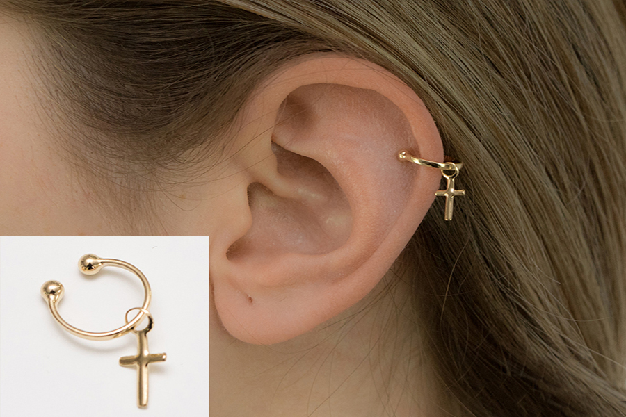 PINGENTE BANHADO EM OURO PIERCING DE ORELHA, 15mm DIÂMETRO E 2,60mm LARGURA