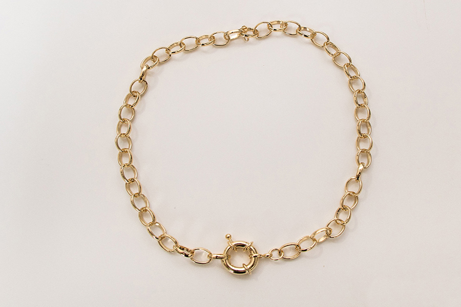 GARGANTILHA BANHADA EM OURO, ELO PORTUGUÊS 1,80mm DIÂMETRO, 42cm COMPRIMENTO E BORBOLETA 16,50mm LARGURA