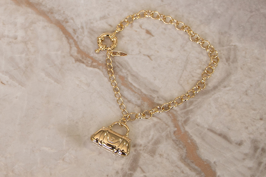 PULSEIRA BANHADA EM OURO, ELO PORTUGUÊS 3mm, ELO CORAÇÃO 4,20mm LARGURA, PINGENTE CORAÇÃO 11mm LARGURA COM MENINA