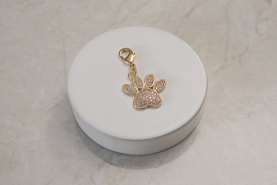 PINGENTE BANHADO EM OURO, CRISTAL REDONDO 26mm, VETERINÁRIA