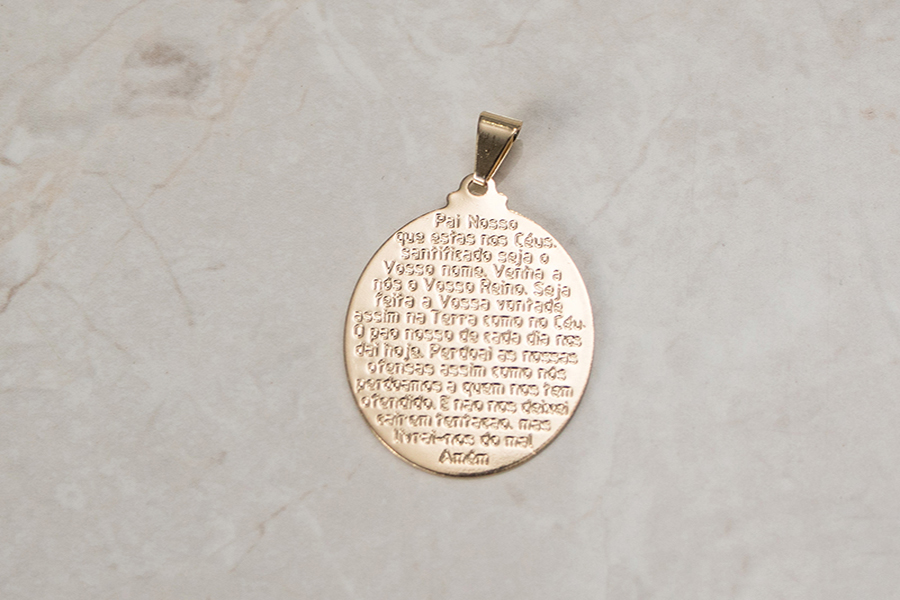 PINGENTE BANHADO EM OURO PAI NOSSO 26mm DIÂMETRO E CONTRA ARGOLA COM 18 ZIRCÔNIAS