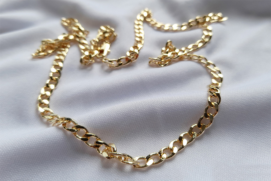 CORRENTE BANHADA EM OURO, ELO PORTUGUÊS 5mm, 40cm COMPRIMENTO, EXTENSOR 5cm COMPRIMENTO E PESO 11,3g