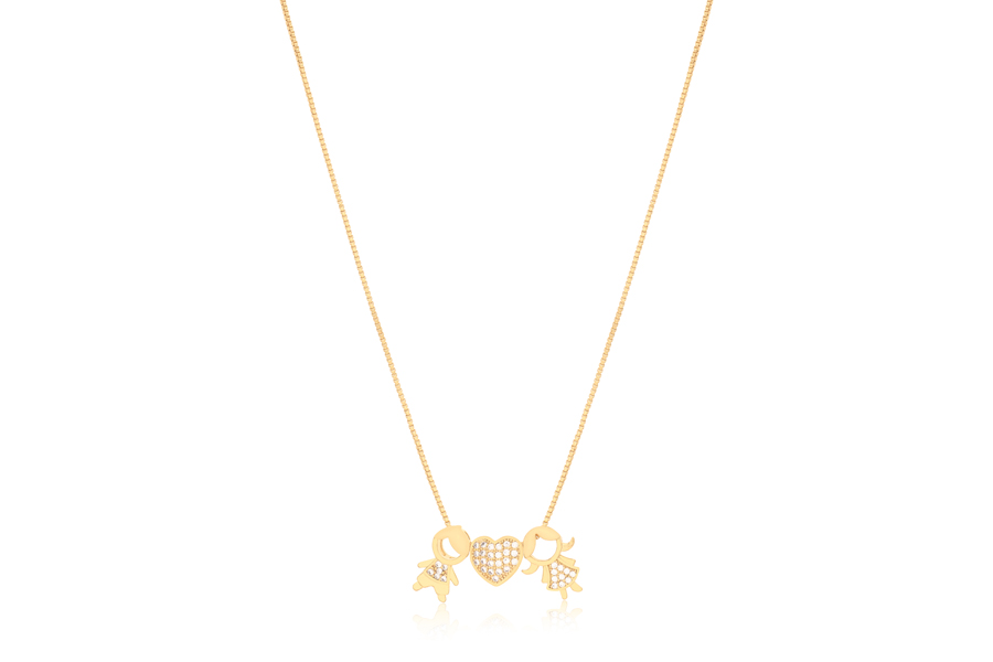 GARGANTILHA BANHADA EM OURO, ELO VENEZIANA 0,80mm, 40cm COMPRIMENTO, EXTENSOR 5cm COMPRIMENTO E TREVO 9mm LARGURA, COLEÇÃO ÍCONES
