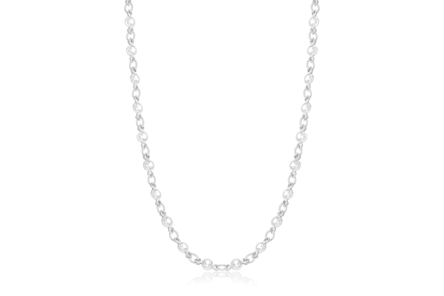 CORRENTE BANHADA EM PRATA LEVE, ELO LACRAIA LAMINADA 3mm LARGURA, 43cm COMPRIMENTO E PESO 6,00g