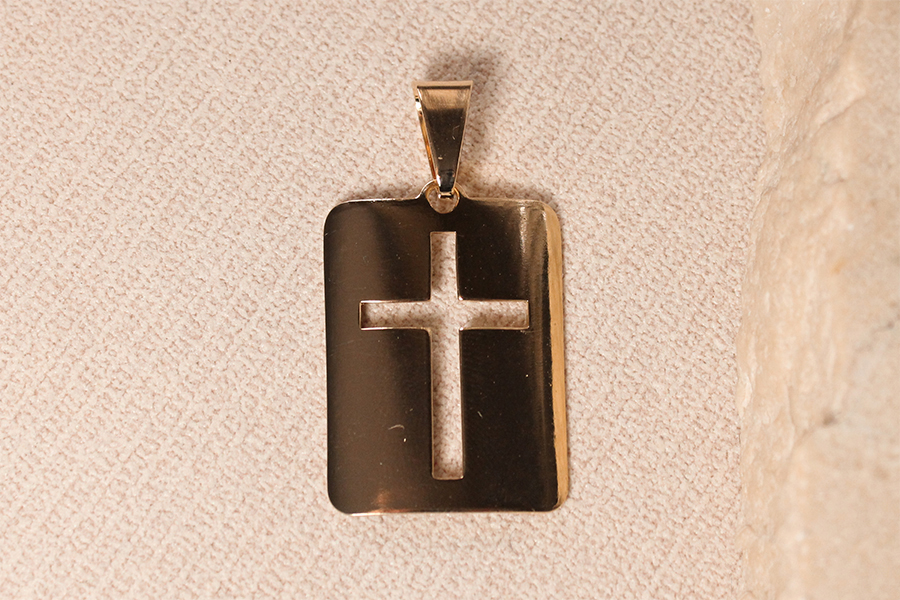 PINGENTE BANHADO EM OURO, 15mm DE DIÂMETRO, CRUZ