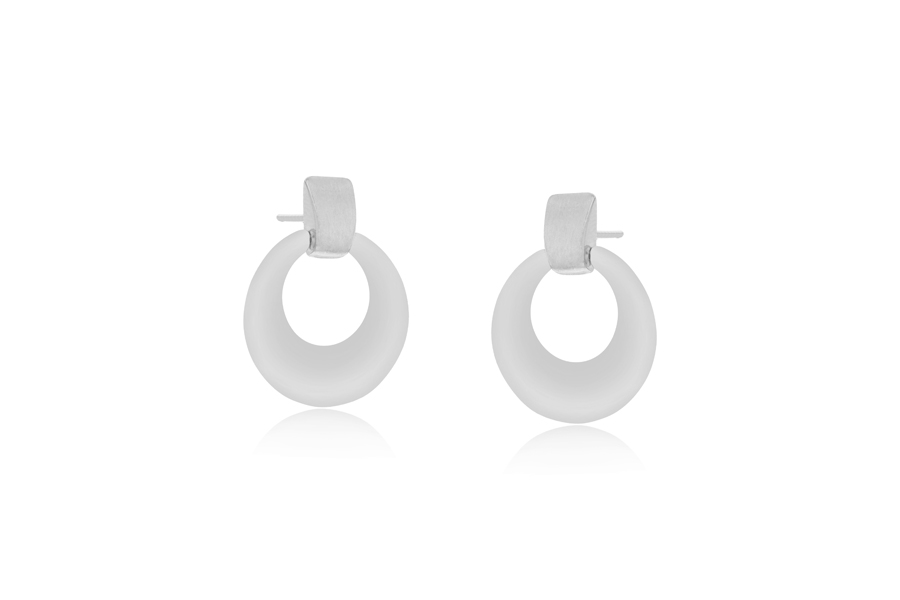 BRINCO BANHADO EM RÓDIO BRANCO, OVAL 25x22mm